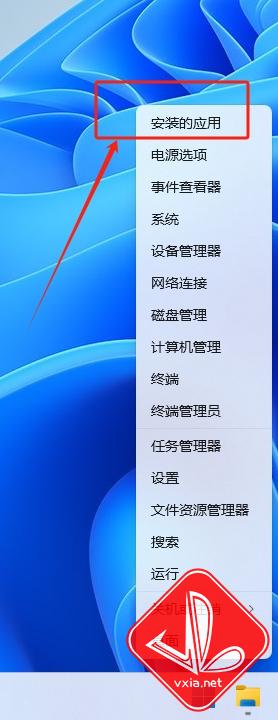 1、在开始菜单处,右键 --> 安装的应用